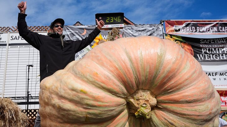 Доусону удалось вырастить тыкву весом 1 064 килограмма. Победа в конкурсе принесла ему 20 тысяч долларов в качестве приза.