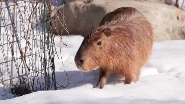 Капибары находятся на старой территории зоосада. Им важны водоемы, поэтому в теплое время года эти животные плавают в уличном рве. Сначала на улицу вышла Симка, которая родилась осенью 2025-го. За ней последовала и ее сестра Верта. Живущие рядом муравьеды Диего и Белла также выходят погулять.