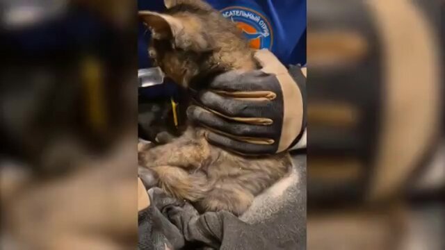 ПроисшествияСпасатели освободили кошку, застрявшую на 4 дня в стене дома в Москве