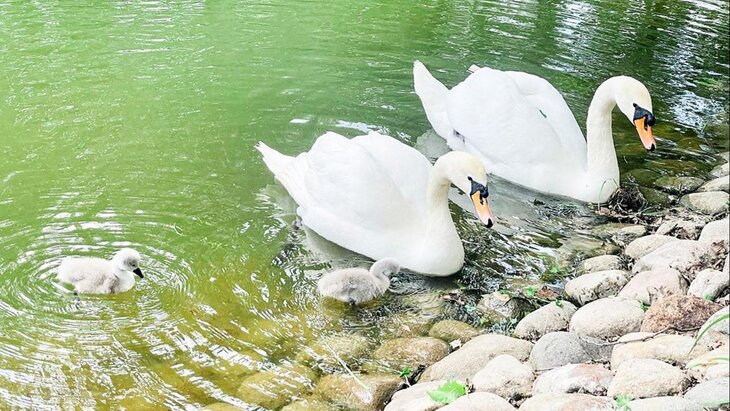 В свою очередь, в Лианозовском парке потомство принесли лебеди Ромео и Джульетта. Родители следят за безопасностью птенцов, а специалисты парка разработали для них специальный рацион.