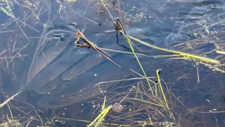 В нацпарке отметили, что первыми на мелководье выходят мелкие особи, а завершают нерест самые крупные. Размножение происходит группами: одну самку сопровождают от 2 до 4 самцов, а у крупных особей "свита" может достигать 8.