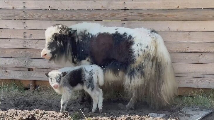 Двухлетняя самка Мальвина стала мамой впервые. Сейчас ее детенышу уже три недели. Маленький як здоров, хорошо питается и быстро растет.