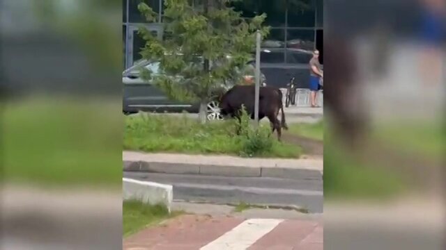ОбществоБесхозный бык вышел в центр подмосковных Люберец