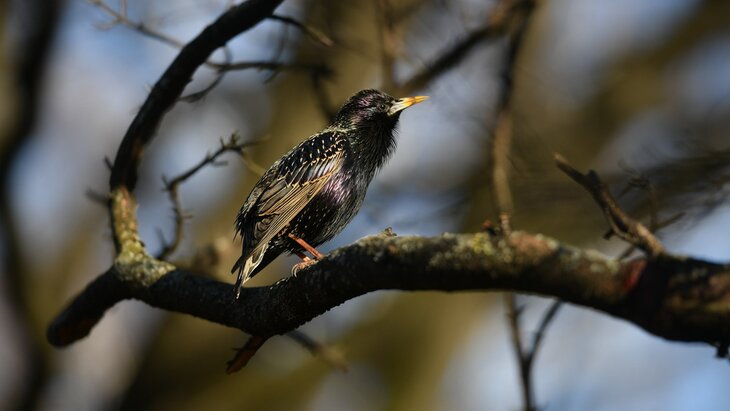 В парке отметили, что узнать скворца можно по скрипучим трелям и свистам, которые он издает. Кроме того, эти птицы способны повторять различные звучи, в том числе воспроизводить человеческий голос.