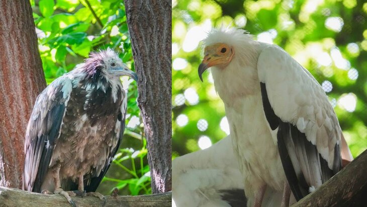 Как рассказала Акулова, цвет оперения зависит от возраста: у более молодых особей темный окрас, а взрослые птицы почти белого цвета с серо-коричневыми вкраплениями. Пол поселившихся в Московском зоопарке стервятников пока не известен.