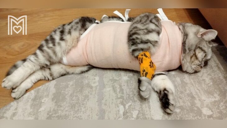 При диагностике выяснилось, что у малыша была травма костей таза и большие трудности с пищеварением. Ему провели сложную операцию, вживив специальную сетку, которая стала для котенка новой брюшной стенкой.