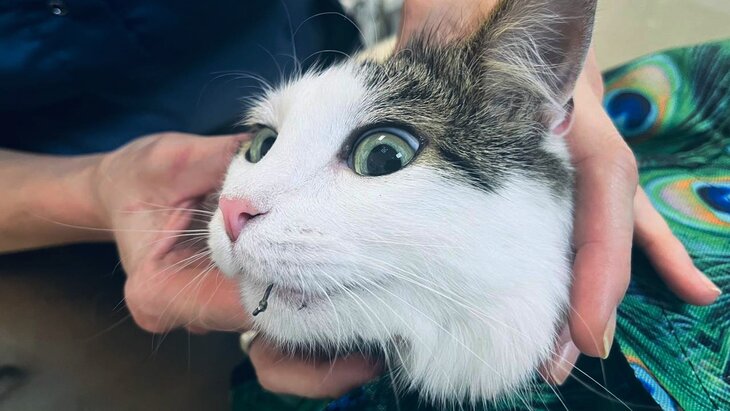 ОбществоМосковские ветеринары спасли кошку, попавшуюся на рыболовный крючок