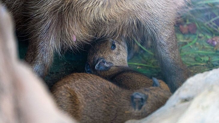 Первый детеныш появился на свет незадолго до закрытия зоопарка. Момент можно было увидеть в онлайн-трансляции из вольера капибар. Сами роды прошли благополучно.