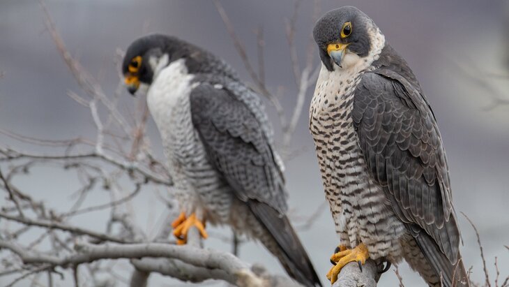 Соколы-сапсаны вернулись под шпиль главного здания МГУ после зимовки. Первую птицу заметили на 30-м этаже – на ее традиционном месте, сообщили в телеграм-канале университета.
