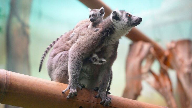Детеныши лемуров родились у пары Барса и Алаутры 11 марта. Другие самки, живущие в этой группе, с интересом ухаживают за малышами: облизывают и удерживают их, не давая далеко уходить, рассказала гендиректор зоосада Светлана Акулова.
