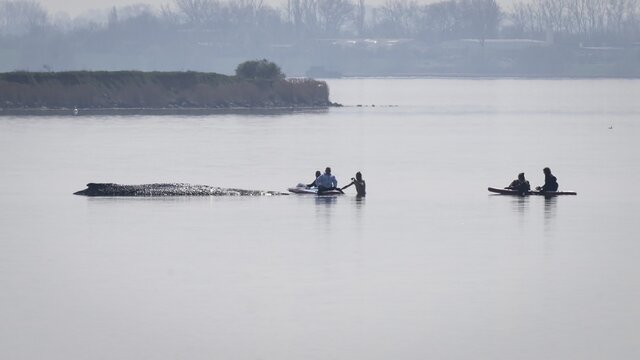 Застрявший на мелководье в Германии кит начал плавать самостоятельно